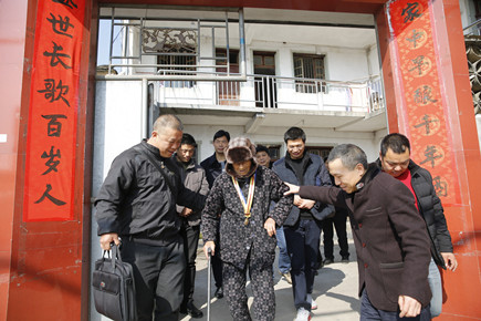 当来到百岁抗战老兵的家中时,张建平立即上前紧紧握住老人家的双手,在亲切的慰问中递上红包,送上春节的祝福,并询问老人家的生活情况和身体状况。