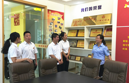图为参观学习现场 在章安中心所所长吴玲珍的带领下,大家先后参观了章安收费所所文化建设、党建活动室、员工学习室等,随后在会议室展开座谈交流,重点就收费所稽查考核机制、稽查人员安排、绿农车检查等工作中遇到的热点难点问题和解决方法进行了磋商探讨。 通过学习交流,大家开阔了视野、拓宽了思路,意识到可以借鉴台金公司较成熟的稽查考核经验,并结合本部门实际,优化稽查机制、提高稽查效率,进一步提升各收费所的稽查考核管理水平。 叶茂