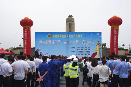 公司参加台州市“安全生产月”宣传活动 6月7日上午,公司响应台州市安全生产委员会“安全生产月”活动号召,在市国资委的组织下,积极参加市安委会、椒江区安委会联合主办的台州市暨椒江区“安全生产月”启动仪式。