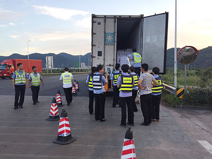 “温岭西又抓获一辆假冒‘绿农车’,外面一层装了猪蹄,里面则是鱼豆腐、鸡柳之类。”7月20日晚上9:50在“台金打偷交流群”又传来一个好消息。