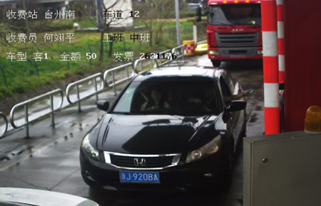1月20日下午1:23分,一辆车牌为浙J920XX在台州南副站出口时,递于工作人员通行卡后没有进行缴费,而是紧随前一辆车躲开起落杆逃离车道。