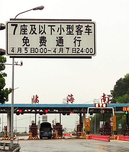 图为免费通行提示牌