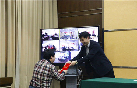 图为集团副总经理陈保卫为“2017年全市交通建设先进个人”何翔颁奖 会上还传达了全市综合交通会议精神,表彰了“2017年全市交通建设先进个人”荣誉称号获得者--集团公司工程养护部经理何翔。