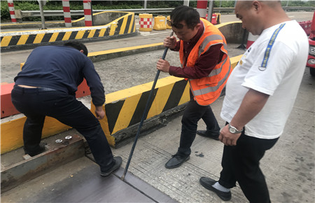 图为工作人员检修车道 面对大分流,我们准备好了。 坚持问题导向,突出重点出实效。临海南收费所成为主分流点,但是该所平时流量小,出口车道仅为三个,而且人员相对不足。如何解决?征费部牵头,召集各收费所针对问题作了动员部署。应对措施主要为“设备先行,人员辅之”。其一临海南进口车道将改为出口,增加出口车道;其二,人力支援,其他三个收费所充分发挥协作精神,每班次抽调人员支援充实临海南收费力量,协助分流保畅。
