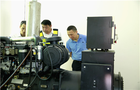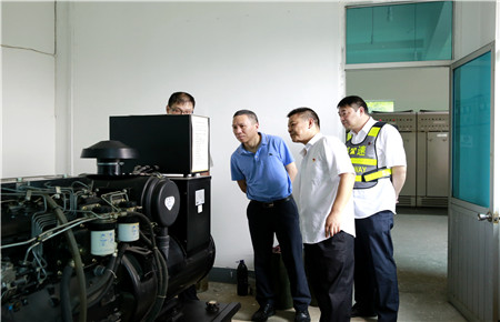张建平察看了配电房,详细了解工作职责,要求当班员工启动发电机组看看保养工作是否到位,机电运行是否正常。