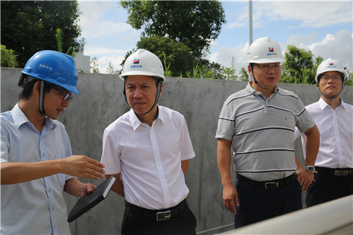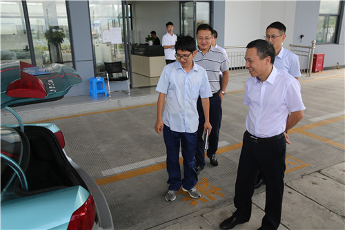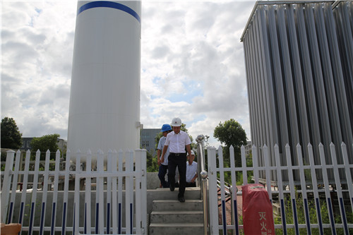 在加气工艺区,张建平一行带上头盔,深入到加气站的核心区块了解加气站的运行状况,看到崭新的设备和整洁的环境,张建平频频点头。