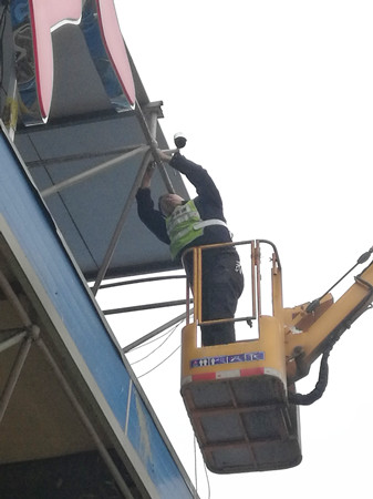而这项工程中最重要的就是钢结构网架吊装,钢结构网架长18米,宽9.4米,重达15吨。为了减少集团通行费的损失和保证吊装过程的安全,工程养护部与施工单位合力研究,专门编制了专项吊装方案,动用了两台25吨吊机。