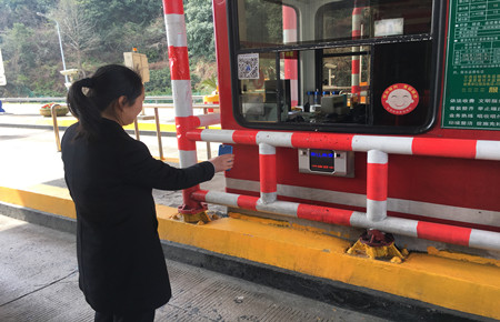 图为工作人员现场测试扫描距离 据悉,使用该项支付方式,司机只要在到达收费所后,将高速公路通行卡交给收费员,然后打开手机支付宝付款码页面,对准安装在收费亭外侧的扫描设备,成功支付后,栏杆便会自动抬杆放行。对于较大的货车,收费员将使用手动扫描仪进行操作。 移动支付一旦开通,不仅将有效解决司乘人员出行时现金不足问题,还将破解收费过程中存在的假钞和零钞不足等难题,也为收费员省去了核对现金数额、辨别钱币真伪、找零的工作量,进一步提升高速公路通行效率和服务水平。 项寅晓 陈莹