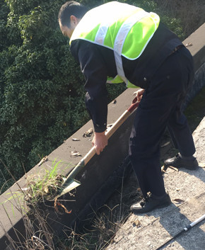 图为清理后的屋顶排水沟