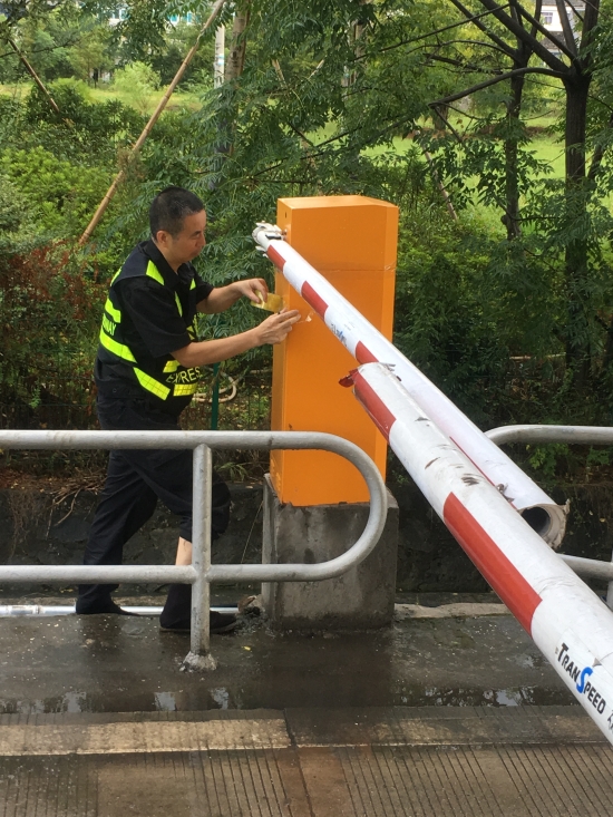 增强机电设备防水措施。集团收费站有很多机电设备直接安装在户外,因外层有开关柜保护,一般雨水是无法渗透的。可一旦遇上台风雨等恶劣天气就很难确保内部设备不会被打湿,尤其是计量柜里面的计重设备,一旦短路损坏会立即造成车辆拥堵。因此,刚完成高杆灯下降工作的中心队员顾不上休息,又马不停蹄赶赴收费所将计量柜、栏杆机等重要设备用封带纸进行密封处理,不漏过任何一处可能进水的地方,大大增强了这些设备防水性能。