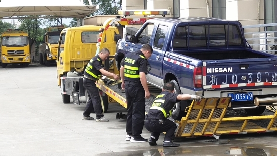 图为演练现场 此次演练的虚拟情境为隧道内发生车辆起火事件并造成路产损失而开展的救援处置。施救中心在接到指令后,两人一组,分成两组,分别驾驶施救车辆和勘查车辆出警奔赴事故现场。 演习过程中,公司安保部对中心人员快速反应、科学处置,及时灭火和现场勘查路产损失等专业能力表示了肯定。