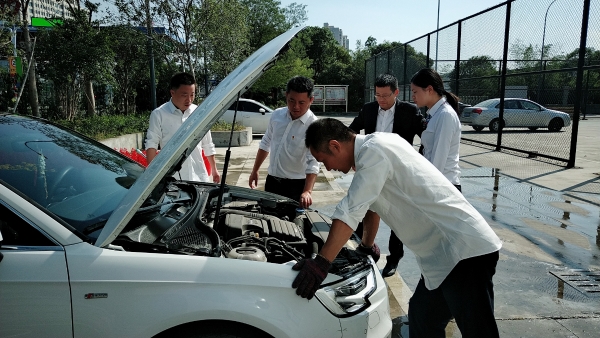 温岭西支部书记周超带领党员服务群众 当天上午,活动一开始,前来洗车的车辆络绎不绝。在支部书记周超的带领下,五名党员便开始分工合作。两名男同志负责冲水、上泡沫、擦洗、再冲水,两名女同志负责擦干和吸尘器清扫内室,还有一名男同志负责开车挪车,需要清洗的车辆一辆接着一辆,党员同志们顾不得擦干身上的被水溅湿了的衣服,忙得不亦乐乎。看着被洗得一尘不染的车,大家都不约而同地会心一笑。