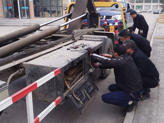 图为车辆“会诊”现场 12月30号,台州收费所的停车场分外热闹,来自广东粤海汽车有限公司的专家会同中心驾驶员一起对施救车辆进行了细致的“集体会诊”,检查每一辆车的性能和车况。广东粤海公司是国家定点的专用汽车生产企业,多年来根据我国公路交通管理的实际需要而开发生产了诸多的清障工程车辆。这次检查就是希望通过厂家与使用方的双方“会诊”,确保车辆的安全使用。 从灯光到制动,从仪表到轮胎,从机油到水箱,大到发动机小到一块踏板,二十多个项目排列有序,双方人员也是一丝不苟,对每一项都进行了检查和测试。 善其事,利其器对施救中心来说,高速公路就是战场,而施救车辆就是最重要的武器。春运和双节将至,施救中心将继续“不忘初心、牢记使命”,奋斗在清障施救一线,力保道路畅通。 王凯