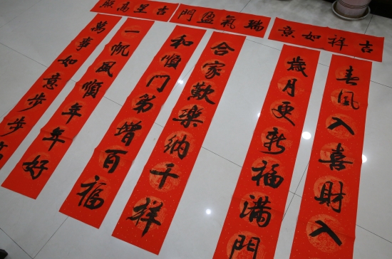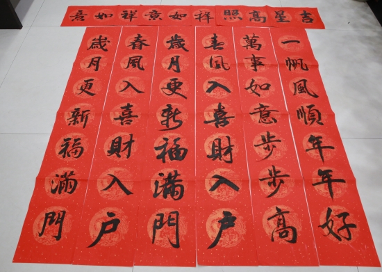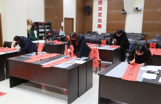 图为学员学习写书法 本次活动由集团办公室牵头组织,以集中书写和分开书写相结合的方式进行。参与者在百忙之中抽出自己的业余时间,积极参与到活动中来,共同书写500多幅春联作品。春节临近,集团全体员工和集团两个结对村的100户村民都将收到暖暖的“送春联”祝福。 当日集中书写现场,参与者们认真埋头书写,并不时地相互请教学习。有的下笔苍劲有力、笔精墨妙,有的如行云流水一笔而下,有的力透纸背,一个个大字很快跃然纸上。