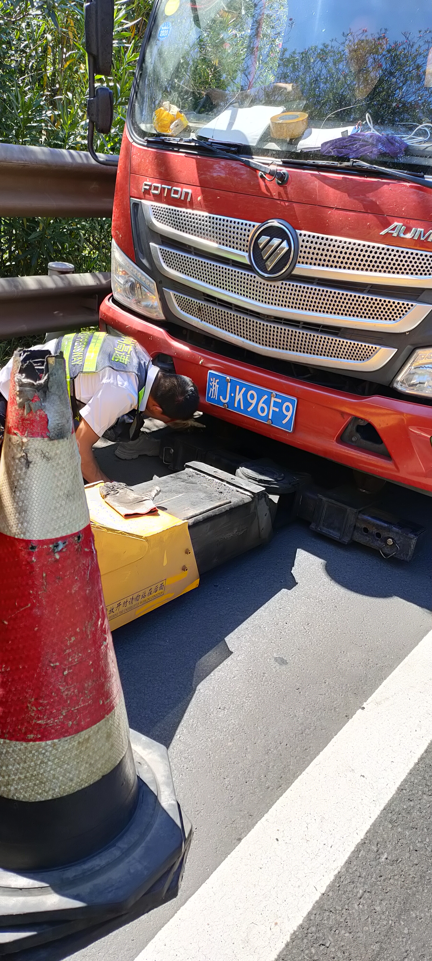 8月14日中午12点50分,施救中心接到报警,甬台温高速宁向距离台州收费所大概5公里的地方有小车抛锚,需要救援。