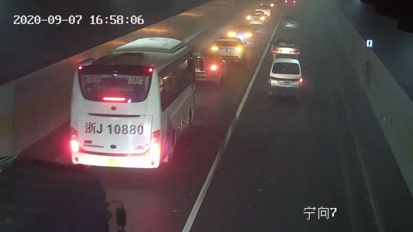 9月7日下午16点53分,一辆大货车驶入宁向黄土岭隧道,打着双闪灯,整车发散出浓浓的烟雾,造成隧道内能见度极低。